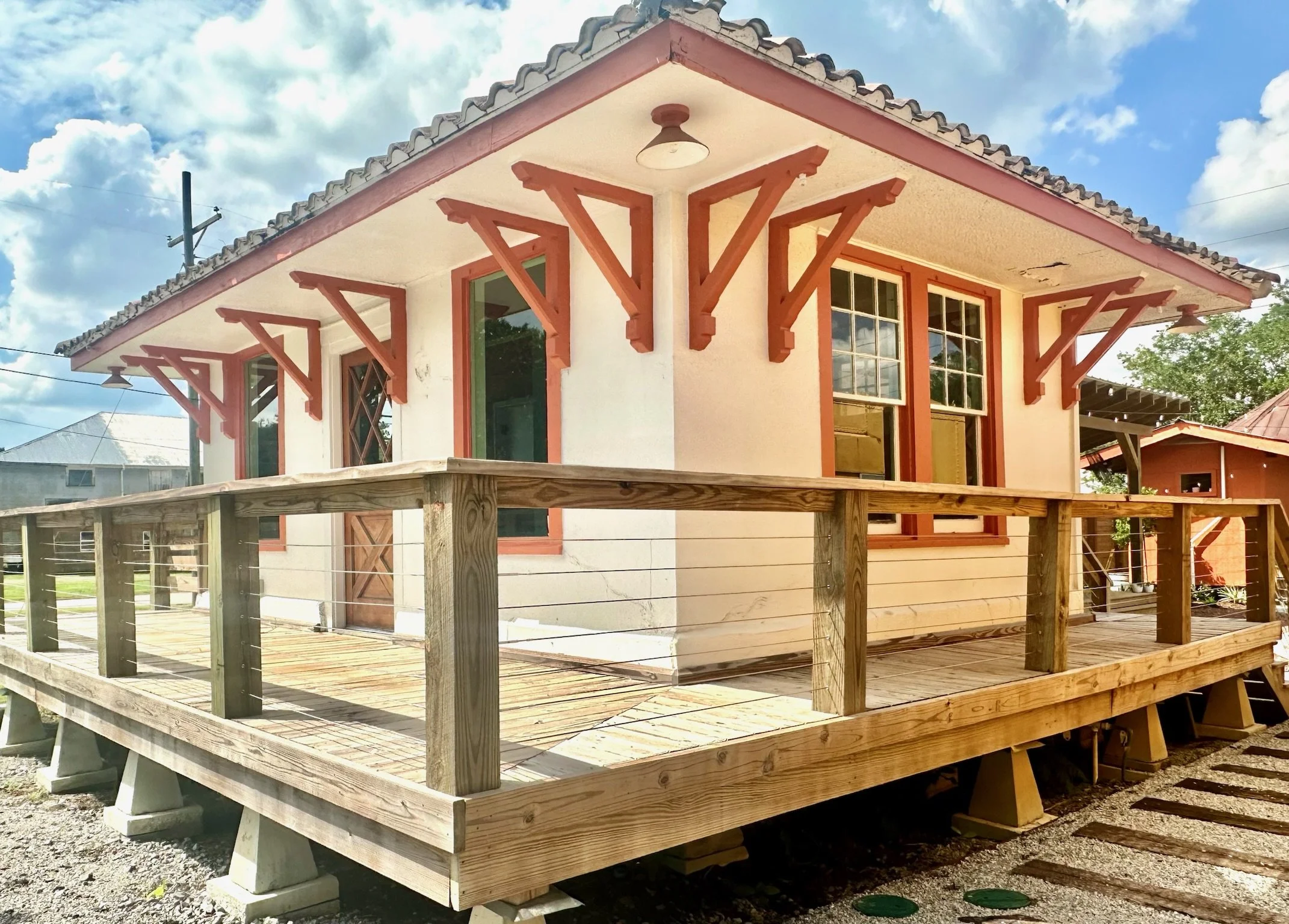 The Ticket Booth has a vibe all of its own at the Train Wreck Inn! Formerly a functioning ticket booth at a train depot, it is now a colorful, classy and efficient space that visitors love!
